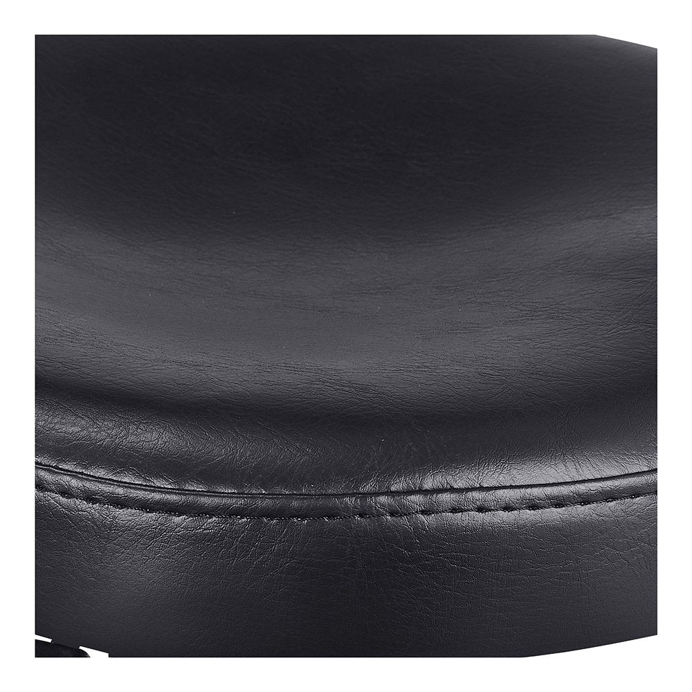 The Futuro Salon Stool by Dir features a stylish design with a stable five-wheel base and backrest support. Comfort and longevity are ensured through the use of high-density memory foam and high-quality fire-resistant vinyl.