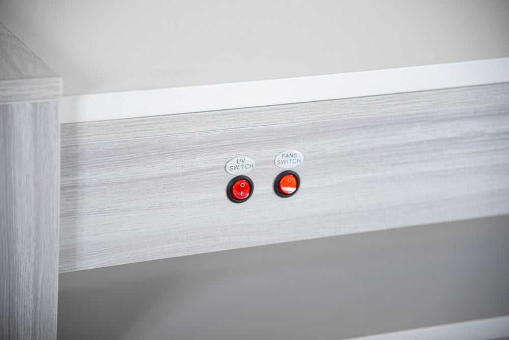 Revamp your salon with the Tiffany Dry Station. This chic workstation boasts a modern gray exterior, a user-friendly on/off button, and a resilient stone countertop. Essential for arranging and drying equipment, the Tiffany Dry Station is a necessary addition to any elite nail salon.