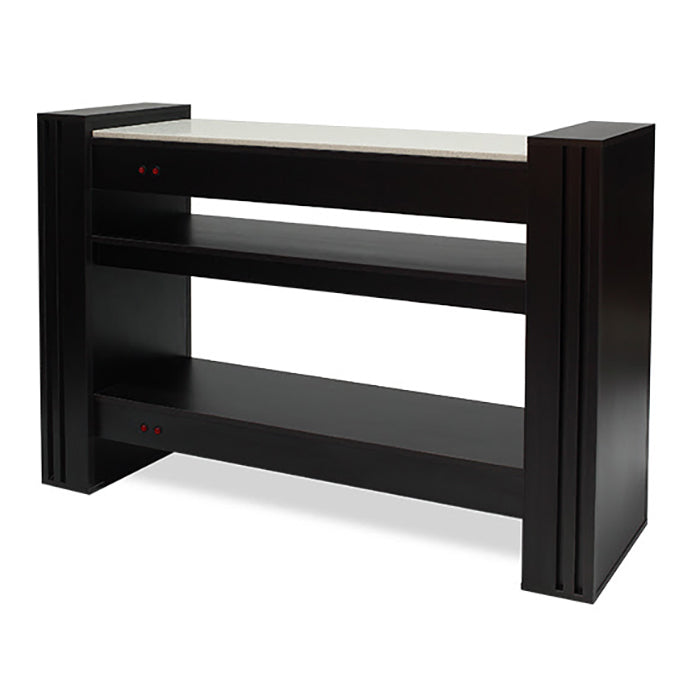 Elevate the aesthetic of any salon with our White Granite Top Nail Dryer in sleek, modern design that effortlessly complements any space. Simple assembly ensures a hassle-free setup, while the dark, opulent walnut finish paired with a pristine white granite top introduces an element of sophistication. This all-inclusive Dry Station features a built-in socket for a UV lamp (bulb not included) and powerful fans to efficiently dry both hands and feet. Available in two sizes (four or six seats) and two colors (walnut or white), it's the epitome of style and functionality for your salon.