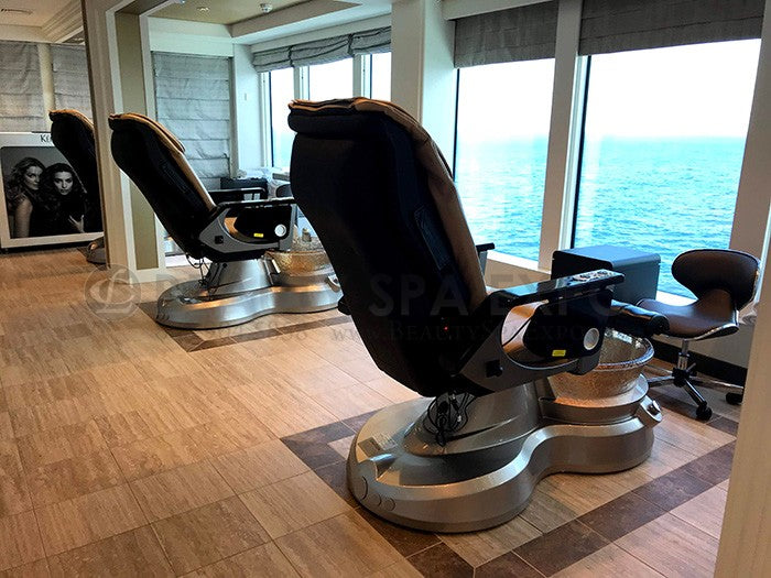 The Lenox LX spa pedicure chair marks a new generation of luxury pedicure service chairs that combine functionality and comfort. Fitted with a built-in remote, the Lenox LX pedicure spa chair is designed to deliver an immersive, full-body shiatsu massage featuring an ornate glass bowl equipped with a pipe less jet whirlpool system ensuring a truly invigorating and lasting impression. Modern design and beautiful finishes create a synergy of cool, contemporary style and enveloping comfort. The Lenox LX pedicure chair is truly the pedicure spa of choice for your Spa and Salon with an eye for design. Foldable arm rests recline with ease for ultimate comfort and relaxation of clients. Fitted technician remote can conveniently adjust chair functions and positions at the push of a button. Adjustable foot-rest can be positioned for the convenience of clients and pedicurists.