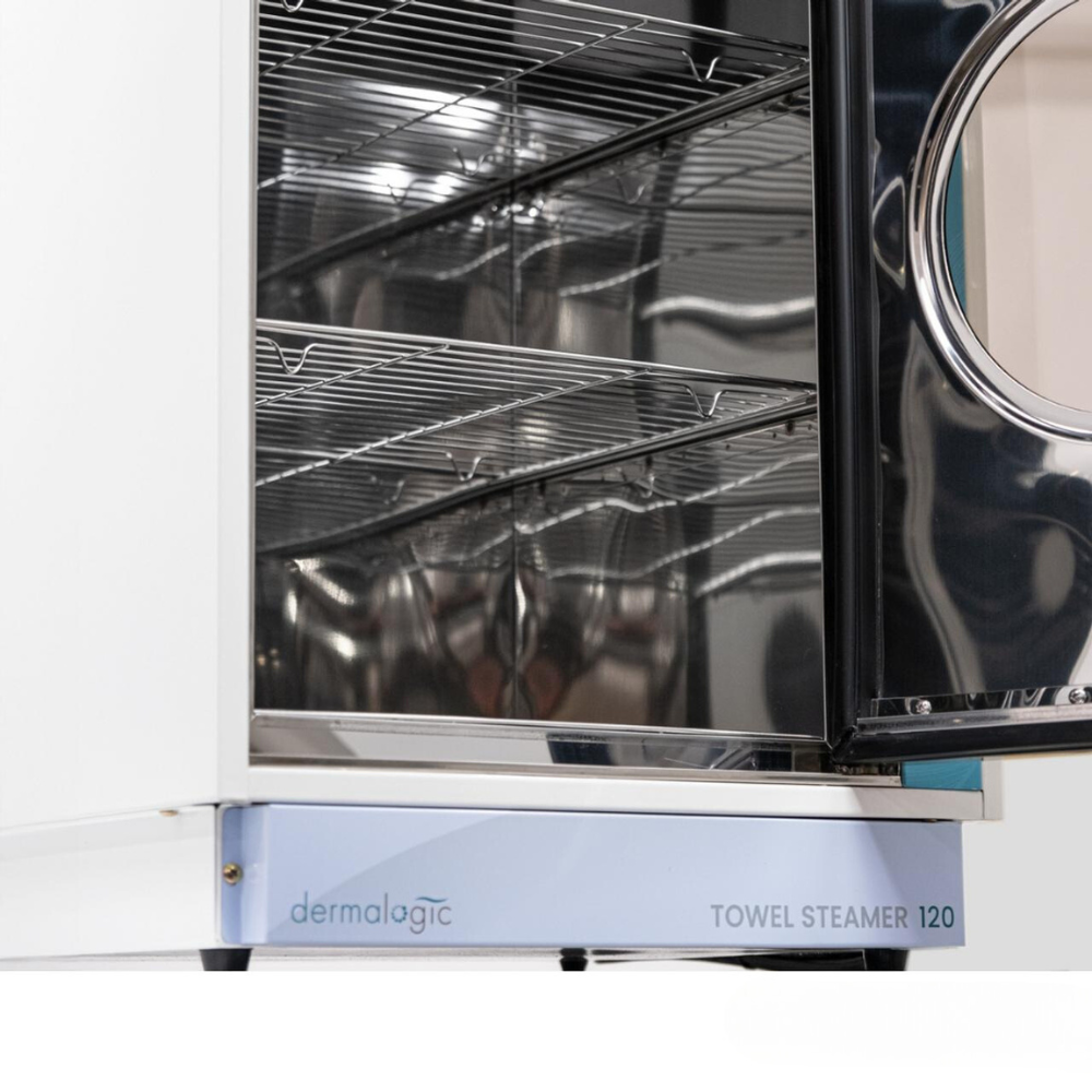 Experience the convenience and luxury of Dermalogic Towel Steamer 120. Our towel steamers are available in various sizes to suit your salon's needs. Equipped with shelves, they offer ample storage for towels and a continuous supply of warm towels. With indicator lights that warn you of low water levels, auto shut-off for added safety, and an adjustable temperature thermostat for your convenience, never worry about running out of hot towels again. Trust in the dependability of our towel steamers.
