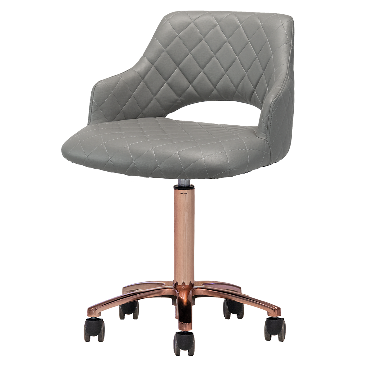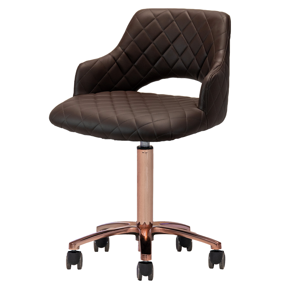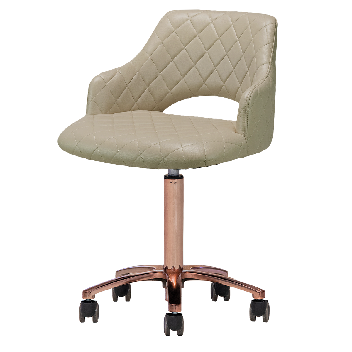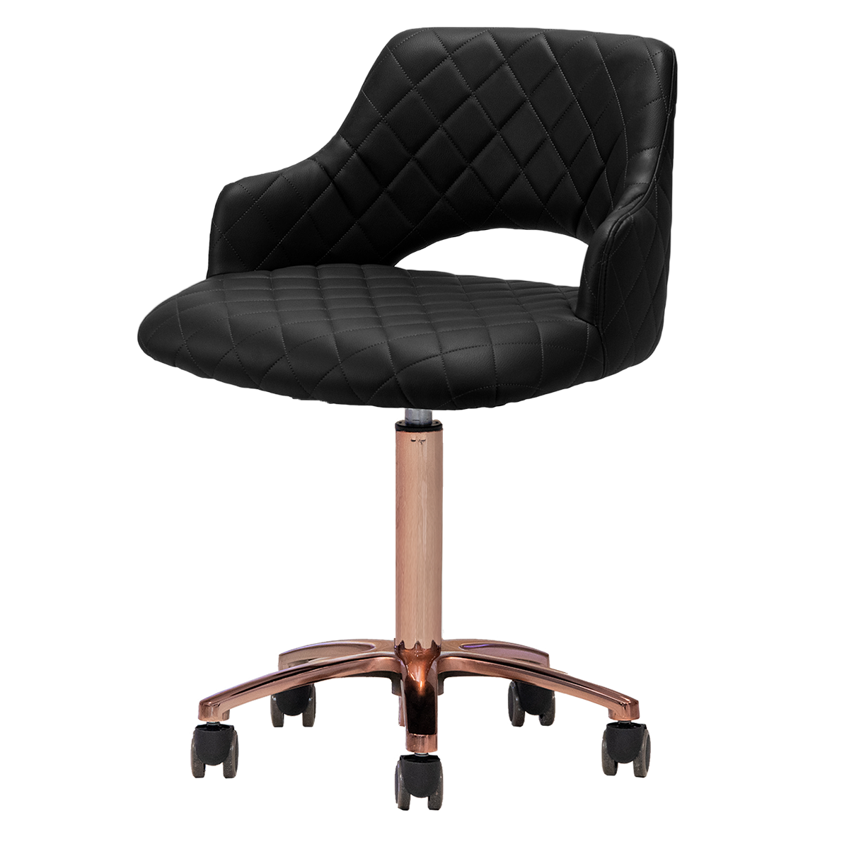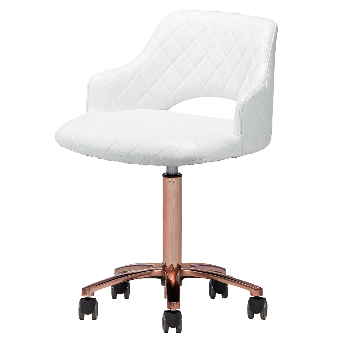 Upgrade your salon experience with the Gem Gold Edition Manicure Stool, designed for ultimate comfort during long working hours. Its extra-wide seat offers a spacious, comfortable sitting experience that every technician will appreciate. Upholstered in premium quality PU leather available in five vibrant colors and enhanced with elegant diamond stitching, this technician stool is both stylish and functional. Treat your top technician like the rare gem they are—exceptional talent is as precious as finding a gem in the ocean. Available with a trendy rose gold or yellow gold star base leg, this stool is a must-have addition to your salon furniture collection.