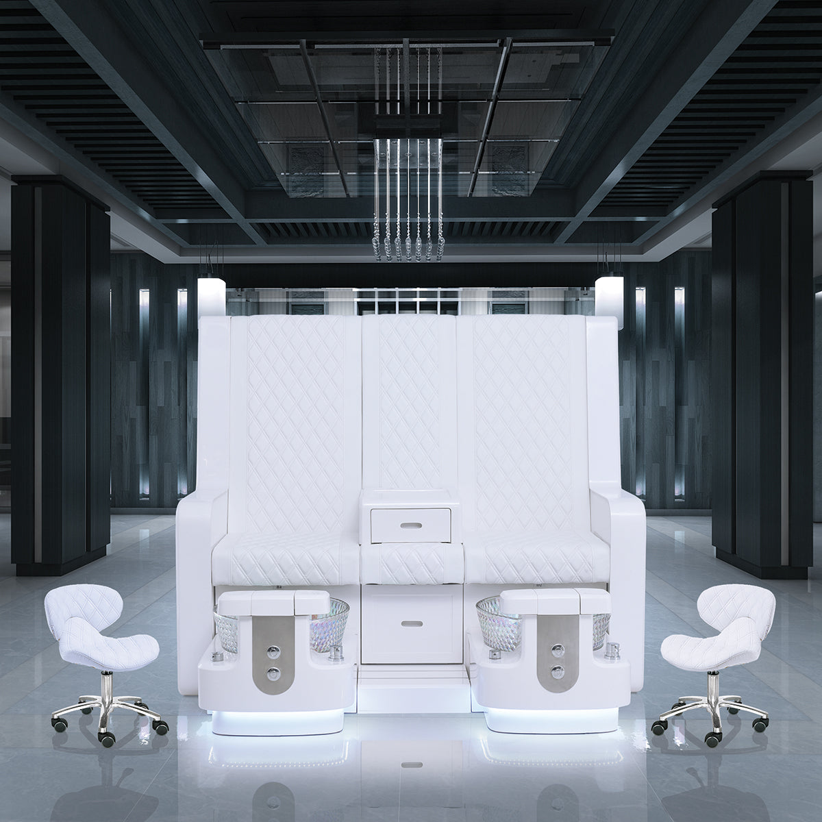 Revamp your salon experience with the Gemini Pedicure Bench! Designed for VIP or private settings that foster group interaction, this bench creates a cozy and engaging social atmosphere. Its unique side-by-side bench seating provides an opportunity for clients to chat while enjoying their pedicures, making it an essential addition to any salon or spa. Complete with cup holders, USB, and AC outlets in the center console, your clients can unwind and recharge without any hassle.
