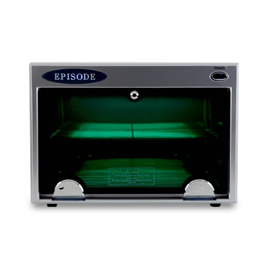 Don't just sanitize your implements, do it better than your competition and sterilize. Professional Episode UV sanitizer cabinet unit equipped with 2 pull out shelves and ultraviolet hospital grade germicidal bulb. Automatic on/off function door and easy view window.